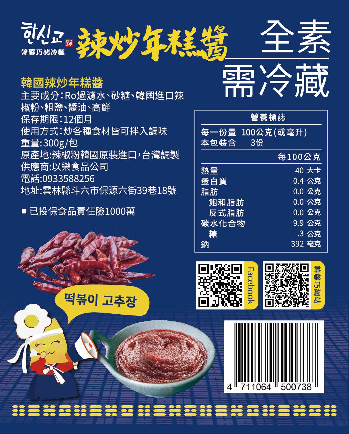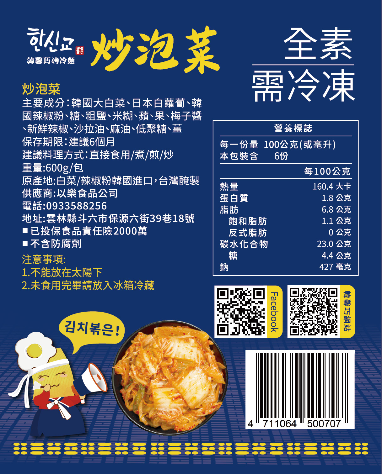 保存期限:12個月(炒泡菜:6個月)