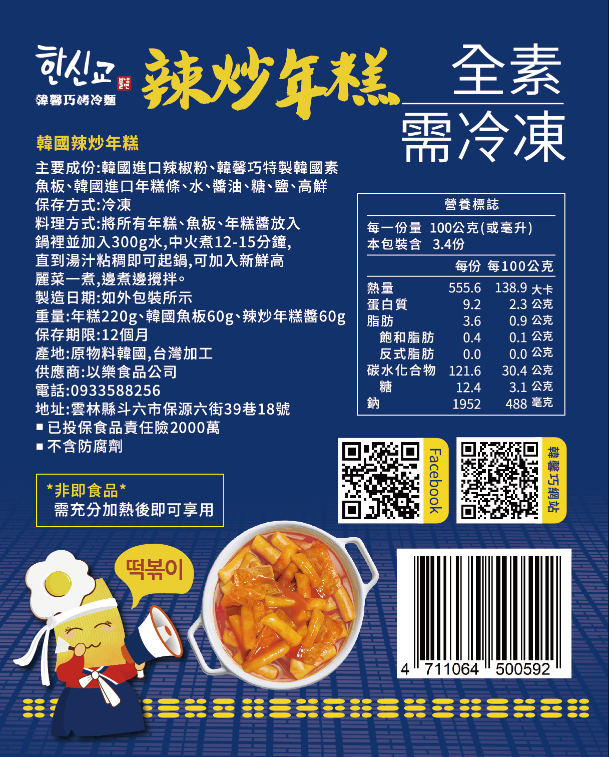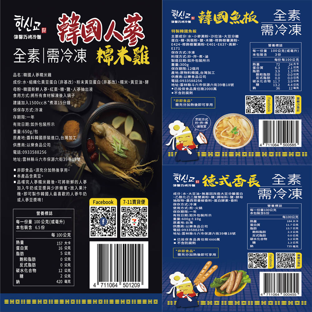 (辣炒年糕340g*1、辣炒年糕醬300g*1、韓國炒泡菜600g*1、德式香長600g*1、韓國魚板300g*1)