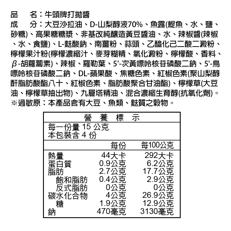 ◎Brand:牛頭牌 ◎Specifications: 60g克 x 1 x 1Bag包