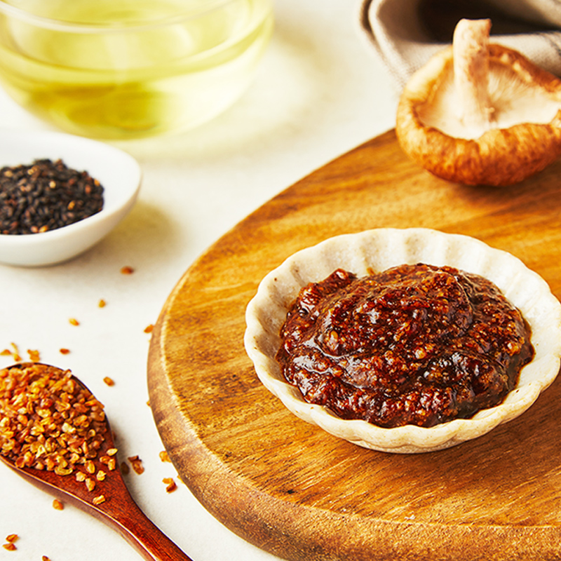 軟質棕櫚油、豆瓣醬、海藻糖、D-山梨醇、醬油、香菇、蘑菇、鹽、胡麻油、芝麻、L-麩酸鈉、昆布、蕎麥粉、安基乙酸、磷酸二鈉、琥珀酸二鈉