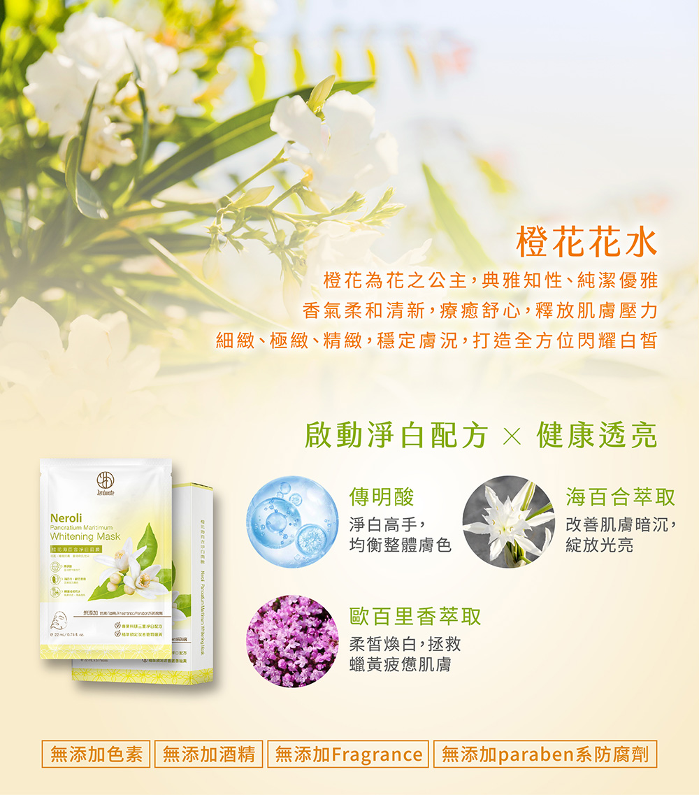 主要成分:橙花花水、海百合萃取、傳明酸、歐百里香萃取