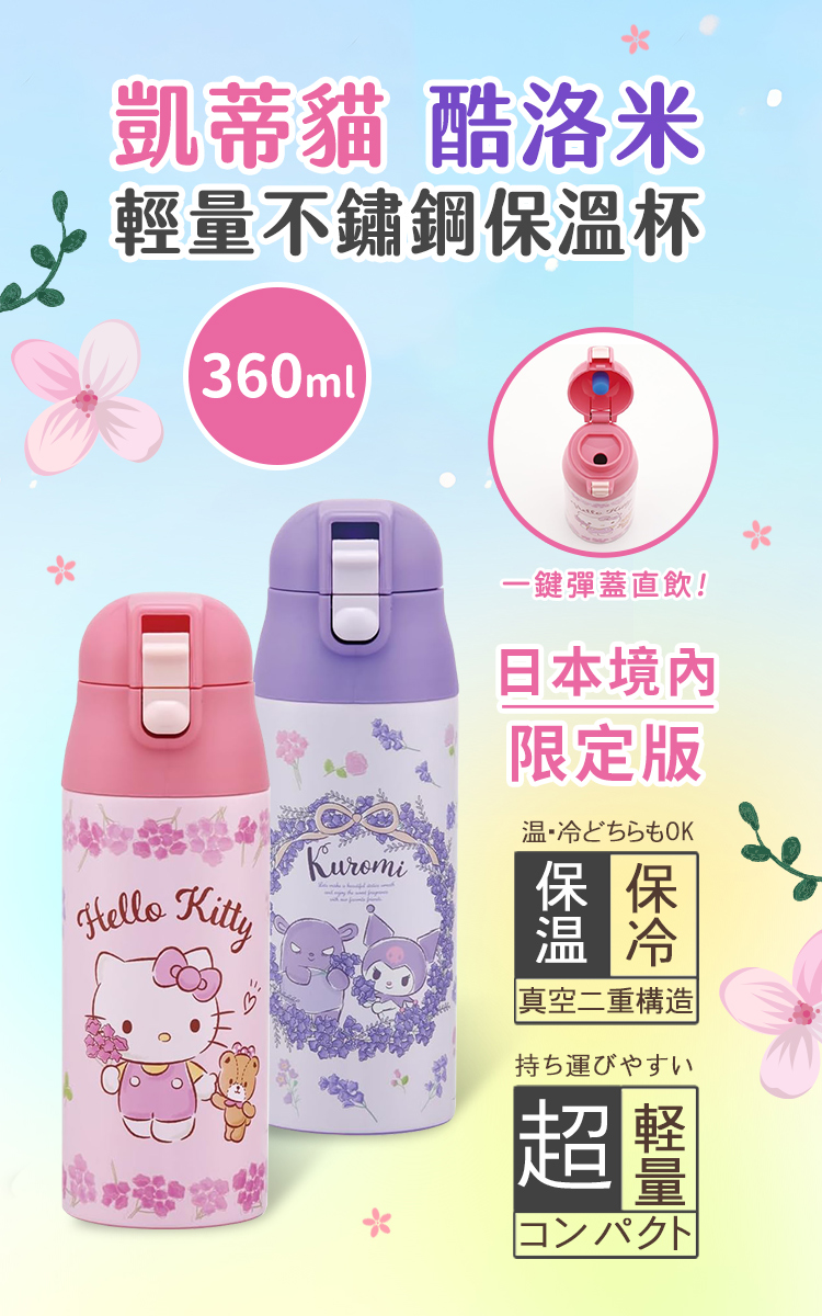 【百科良品】三麗鷗 Kitty 凱蒂貓 花圈款 輕量不鏽鋼保溫杯 隨身杯 保溫保冷杯 360ml(日本境內版)