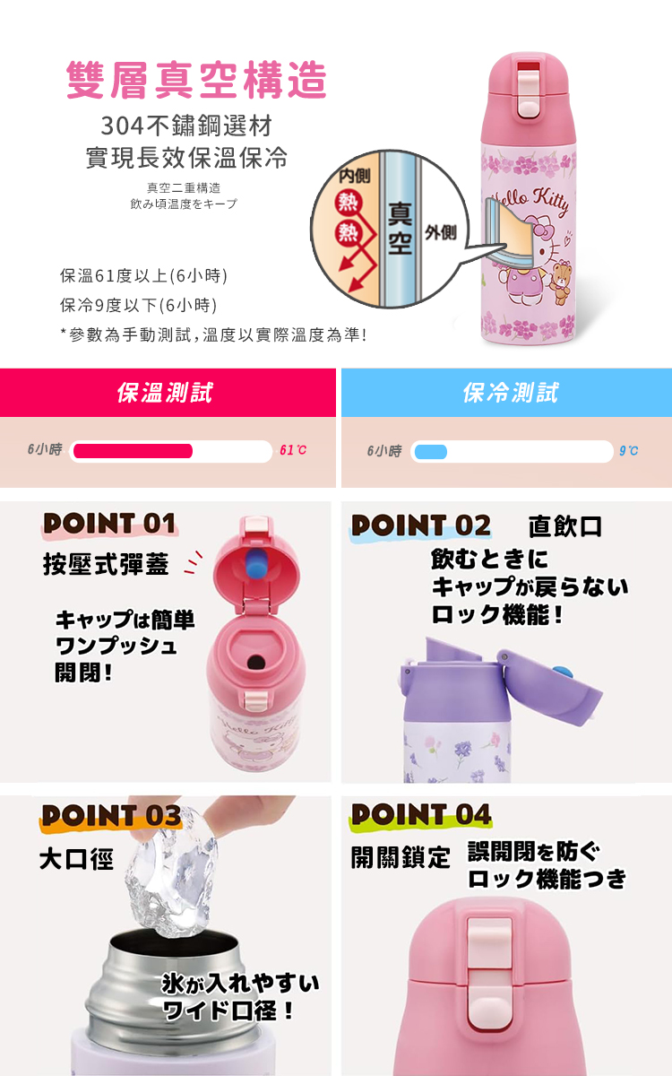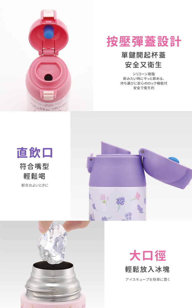 ●日本境內版 正版授權●一指彈開好暢飲●真空二層構造,保溫保冷●超輕量杯身好輕便●矽膠防滑底墊不易翻倒