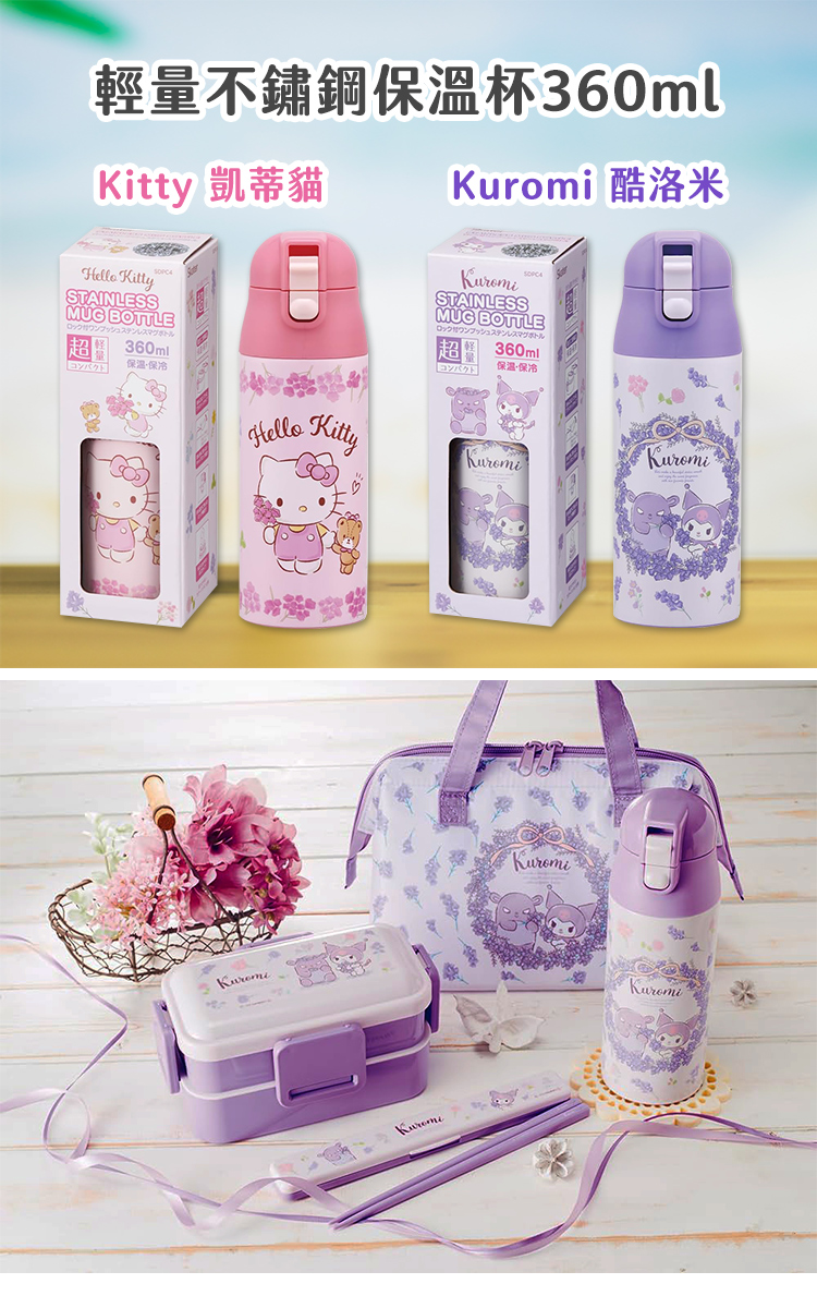 商品尺寸:約直徑6.4×高19cm包裝尺寸:7x7x20cm容量:360ml重量:本體約200g、含包裝約240g材料:內瓶-不鏽鋼SUS304 外瓶-不鏽鋼SUS304 (丙烯樹脂噴塗) 瓶口-不鏽鋼 SUS304 飲水口、上蓋:聚丙烯樹脂 密封圈:矽膠 杯底:彈性樹脂矽膠產地:中國 (日本三麗鷗正版授權)耐溫:保溫61度以上(6小時)、保冷9度以下(6小時)