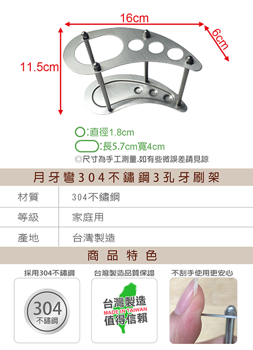 【真心良品】 月牙灣3孔不鏽鋼牙刷架/牙刷架置物架