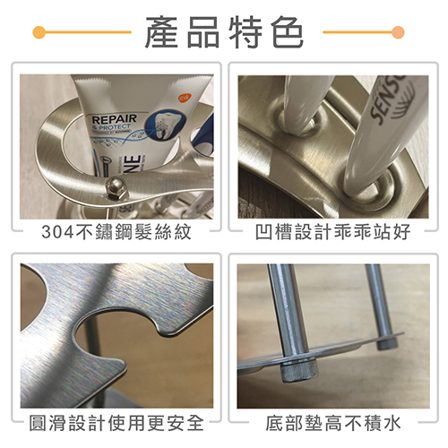 ■你還在傷腦筋找不到理想的牙刷架嗎?■來∼來∼來∼推薦這款好用又超有質感的牙刷架!■304不鏽鋼髮絲紋材質,更添質感!■可讓牙刷牙膏整齊擺放,乾淨又整齊■還可收納刷具,要化妝時隨時一抽快速又方便!※注意事項:勿使用腐蝕性溶劑清潔。商品規格: