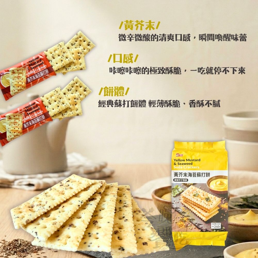 春遊野餐零食 獨立包裝 團購夯品 福伯 黃芥末海苔蘇打餅240g [3包免運組]