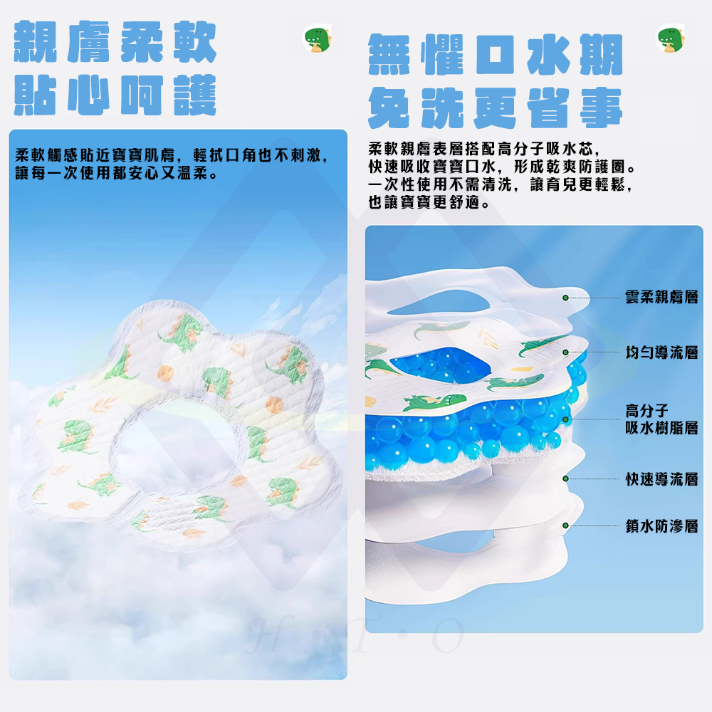 ✅ 搭配高分子吸水芯 快速吸收寶寶口水