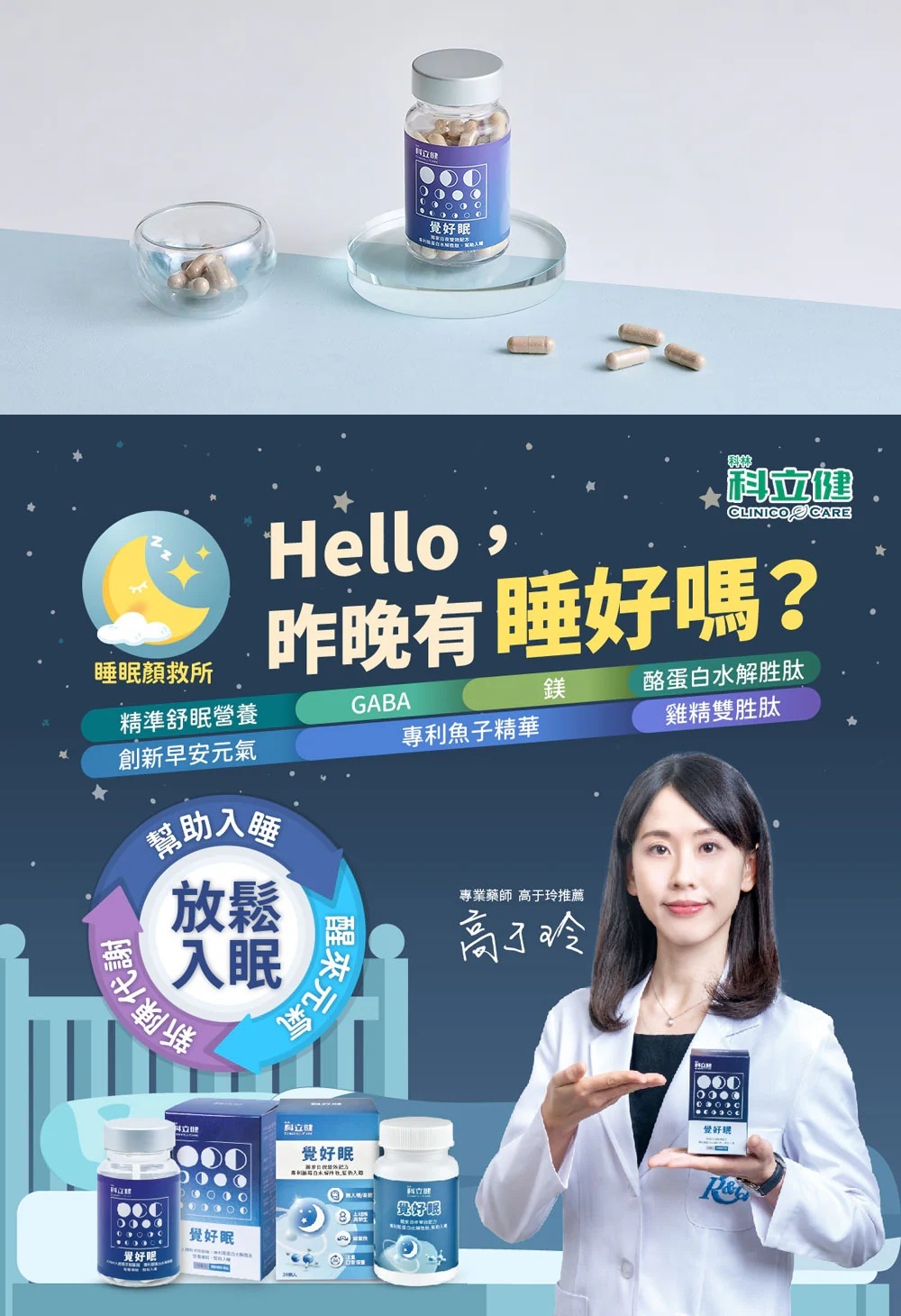 【覺好眠】GABA放鬆舒緩培養舒眠體質、放鬆入睡,好好充電★專利配方培養舒眠體質🔹舒緩放鬆|GABA🔹幫助入睡|酪蛋白水解胜肽、碳酸鎂🔹思慮清晰|咖啡莓果萃取物、專利魚子精華DNA、雞精雙胜肽🔹產品定期SGS檢驗|安全品質有保障 常見問題FAQ💬⭐什麼是GABA?GABA是 Gamma Amino Butyric Acid ( γ-胺基丁酸 ) 的簡稱, 由麩胺酸經發酵後形成,且存在於米、蔬菜、水果中或動物體內的天然胺基酸。GABA是「由內而外」的調理,具有讓心情平靜、放鬆的作用,可以舒緩情緒、穩定精神,還能幫助入睡!⭐【覺好眠】建議如何食用?建議睡前半小時至1小時食用1~2顆,食用後應避免使用3C產品或觀看電視,減少藍光刺激,並搭配良好的日常作息。⭐【覺好眠】適合誰食用?適合12 歲以上、上班族、學生、銀髮族、熬夜族、經常出差的人。 ⭐【覺好眠】素食者可以食用嗎?覺好眠含有動物性原料萃取之成分,為葷食,請素食者留意。⭐【覺好眠】長期食用會成癮嗎?覺好眠屬保健食品而非藥物,不會造成依賴性問題,可以安心食用。【原料成分】:麥芽糊精、碳酸鎂、咖啡果肉萃取物、酪蛋白水解物、麩胺酸發酵物 (麩胺酸發酵物(含GABA)、麥芽糊精)、鮭魚精巢萃取物、激米達®雞肉萃取物(麥芽糊精、雞肉萃取物)、硬脂酸鎂、二氧化矽。 【膠囊成分】:明膠、硫酸月桂酯鈉、二氧化鈦、純水、甘油。
