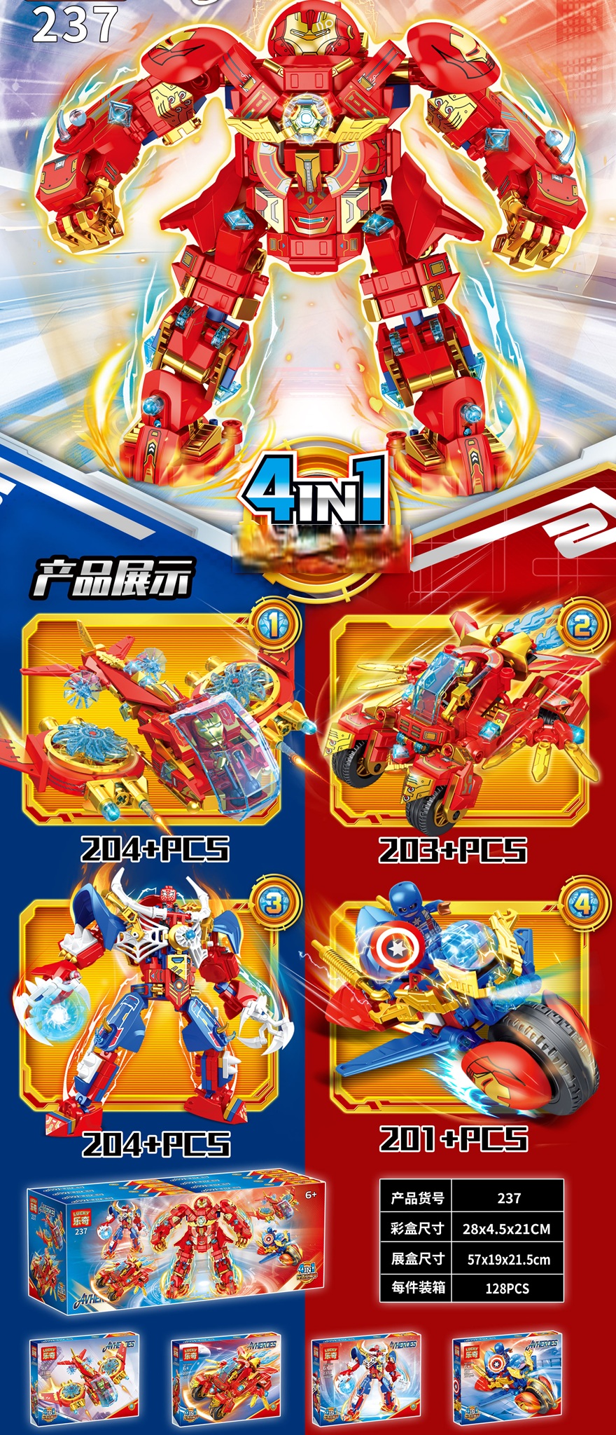 [Brick Republic]LUCKY 237 Iron Mecha – Set of 4 (Educational Building Blocks)