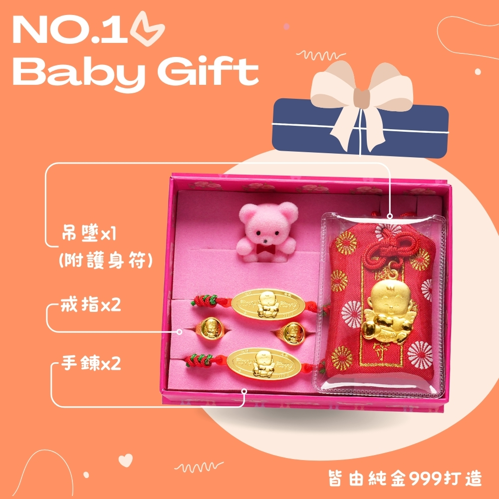 名稱:小天使 甜蜜相約 黃金御守禮盒5件組 (彌月金飾 彌月禮)