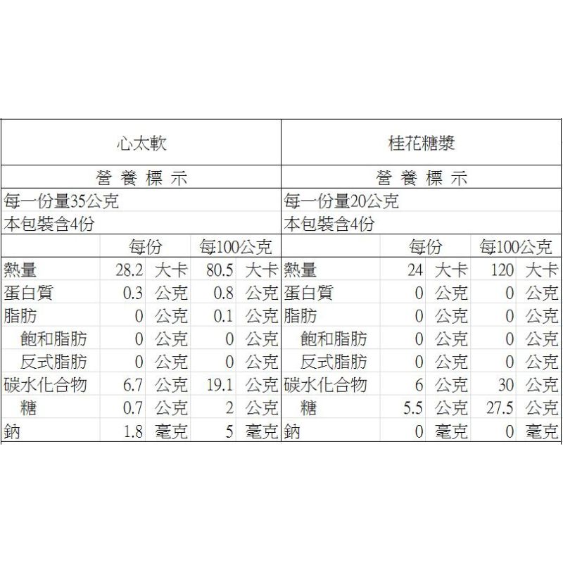 桂花糖漿:水、冰糖、樹薯澱粉、桂花