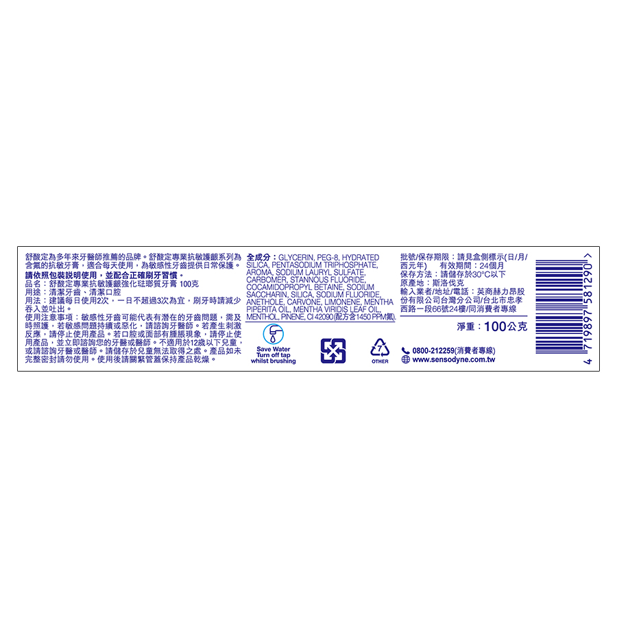 ◎Brand:舒酸定 ◎Specifications: 100g克 x 1 x 1PC支