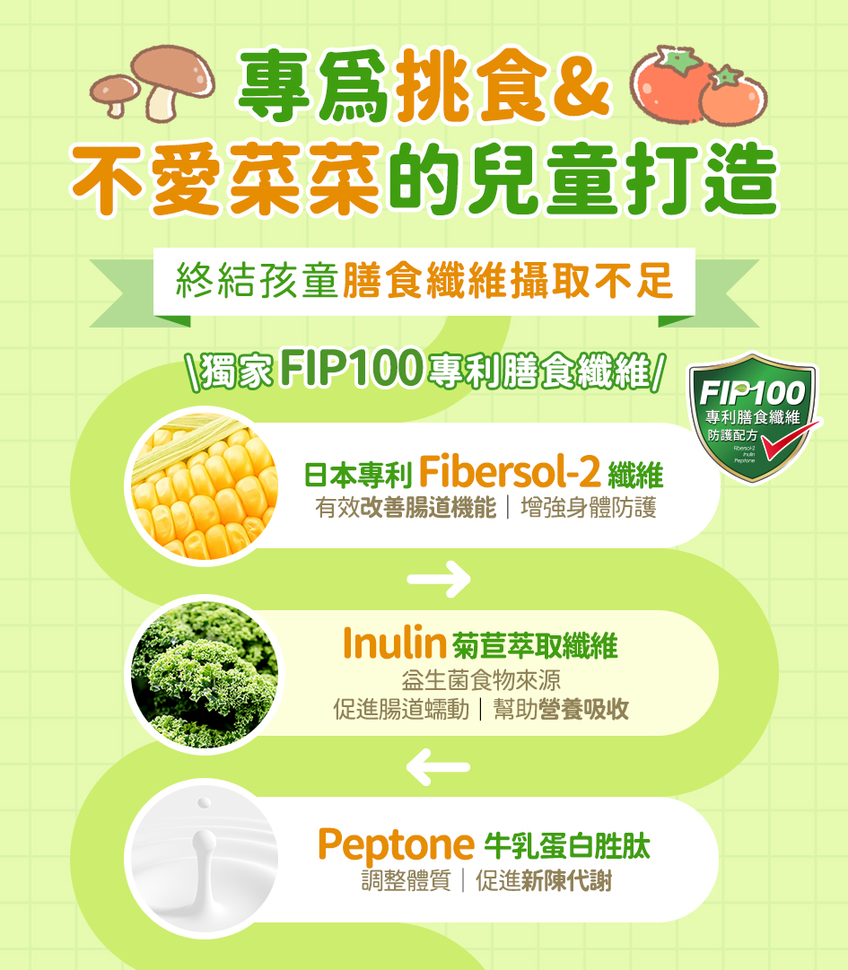 ※訂單數量請務必選擇雙數,例如2、4、6 ※實際數量依照購物車為主★專為挑食、不愛蔬果的兒童打造 ★國家健康食品核准-胃腸功能改善、調節血脂、調節血糖