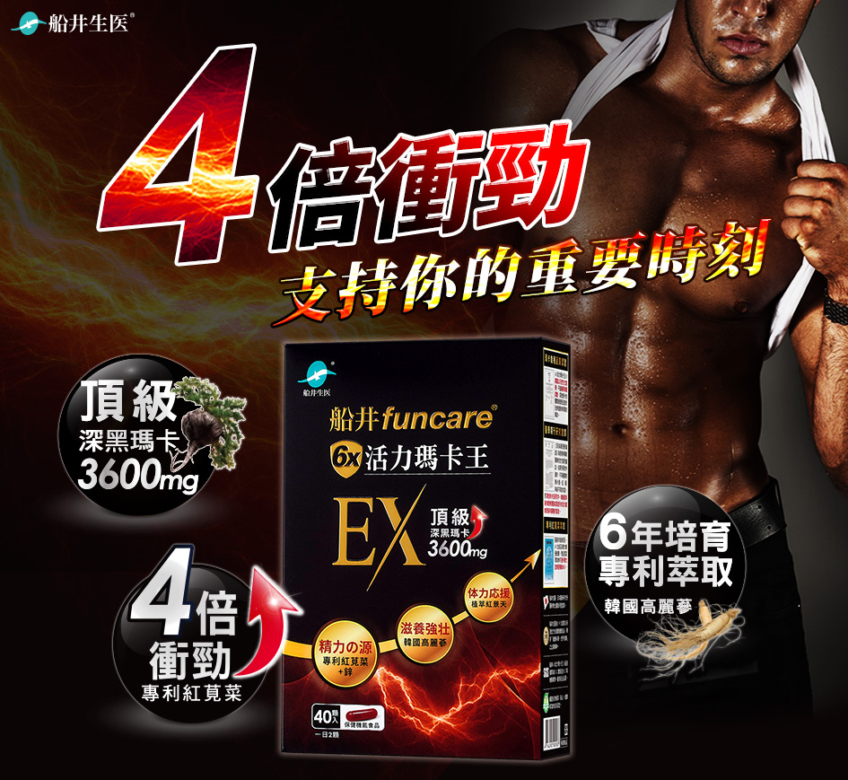 ※訂單數量請務必選擇雙數,例如2、4、6※實際數量依照購物車為主★3600mg,6倍濃縮, 95%頂級深黑瑪卡★專利萃取紅莧菜-4倍衝勁★韓國六年根高麗蔘,補氣益力