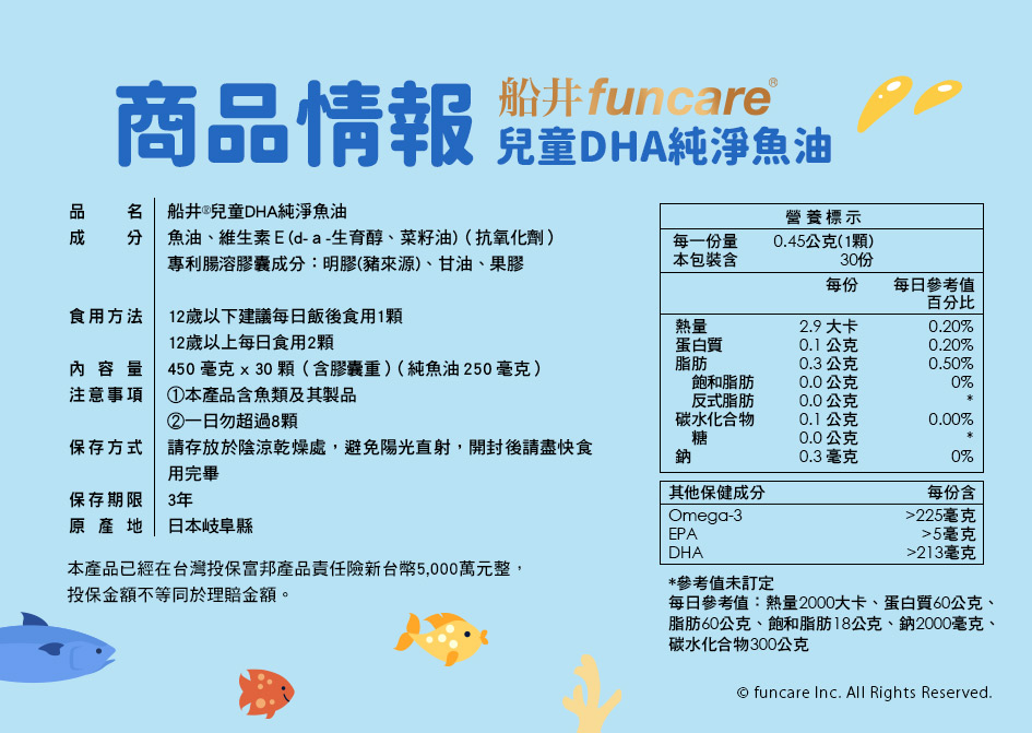 魚油、維生素E(d-a-生育醇、菜籽油)(抗氧化劑)。專利腸溶膠囊成分:明膠、甘油、果膠