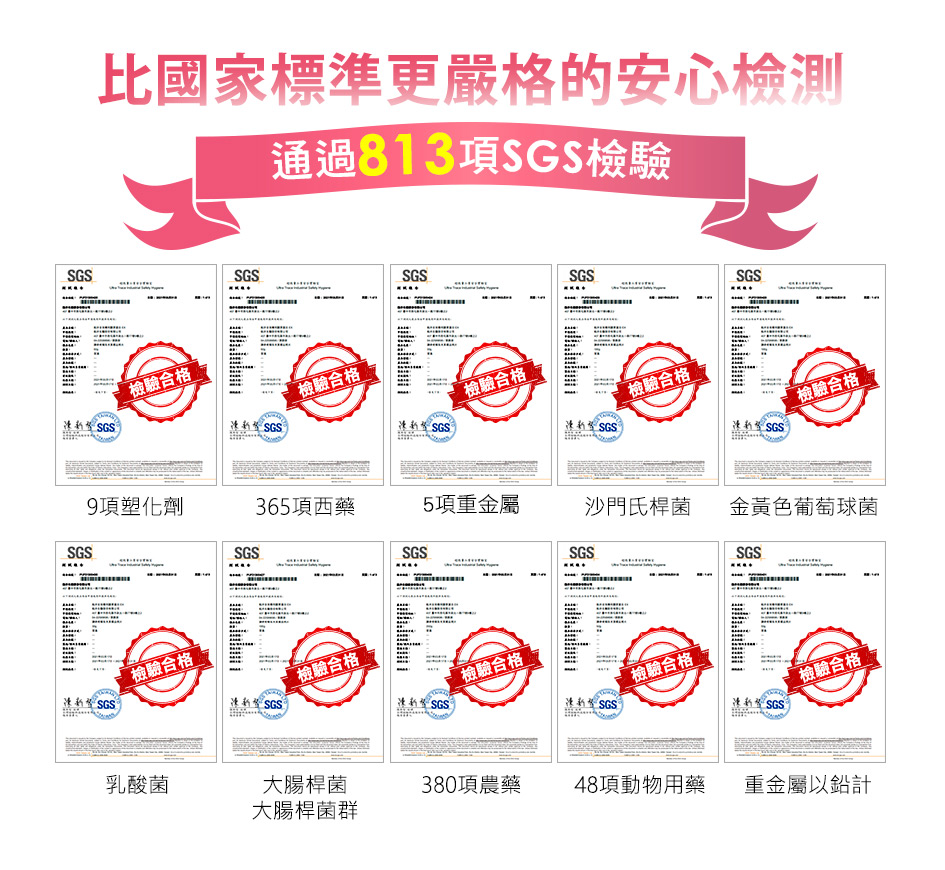 膠原蛋白(含魚膠原蛋白、豬膠原蛋白[德國])、植物油粉、碳酸鈣、 菊糖、香料、維生素C、7種乳酸菌(Lactobacillus fermentum、Lactobacillus paracasei、Lactobacillus rhamnosus、Bifidobacterium longum、Lactobacillus acidophilus、Lactobacillus helveticus、Streptococcus thermophilus)、彈性蛋白、紅石榴抽出物(紅石榴抽出物、麥芽糊精)、流行鏈球菌發酵物(含透明質酸鈉-玻尿酸)、木寡糖、蓮子種子萃取(蓮子胚芽)、蔗糖素(甜味劑)