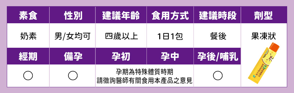 葉黃素20%(葉黃素、麥芽糊精)、玉米黃素5%、益萃質®益生菌發酵粉(PE0301)(唾液乳桿菌AP-32、副乾酪乳桿菌ET-66、植物乳桿菌LPL28)、麥芽糊精)、洋菜粉、酵母粉(含維生素D、硒)、維生素E、AlgaDHA™藻油粉(含DHA)(藻油、麥芽糊精、酪蛋白鈉、麥芽糖漿、脂肪酸甘油酯、L-抗壞血酸棕櫚酸酯(抗氧化劑)、混合濃縮生育醇(抗氧化劑) 、多磷酸鈉、牛奶香料)、美國專利葉黃素10%(辛烯基丁二酸鈉澱粉、乾葡萄糖漿、蔗糖、葉黃素)、紫米萃取物、雨生紅藻萃取(含蝦紅素)、流行鏈球菌發酵物(含透明質酸鈉)、馬奇莓萃取物(智利酒果)、維生素A 副成份:水、D-木糖醇(甜味劑)、綜合蔬果濃縮汁(白葡萄濃縮汁、蘋果濃縮汁、胡蘿蔔濃縮汁、甘蔗濃縮汁、百香果原汁、鳳梨濃縮汁、檸檬濃縮汁、綠花椰菜汁、芹菜濃縮汁、蘆筍濃縮汁)、香料、刺槐豆膠、玉米糖膠、蘋果酸