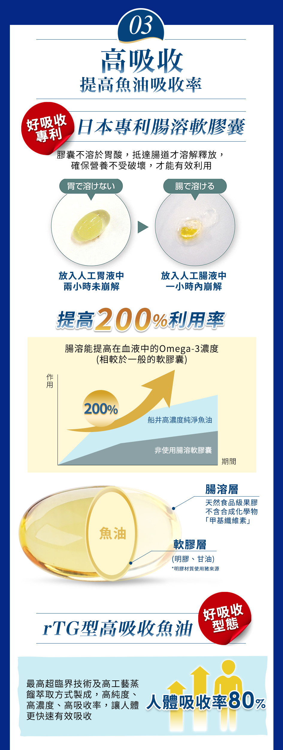 ★97%以上高濃度Omega-3,超頂規魚油★日本專利腸溶軟膠囊,提高營養利用率達200%★高純化萃取rTG型魚油,人體吸收率高達80%