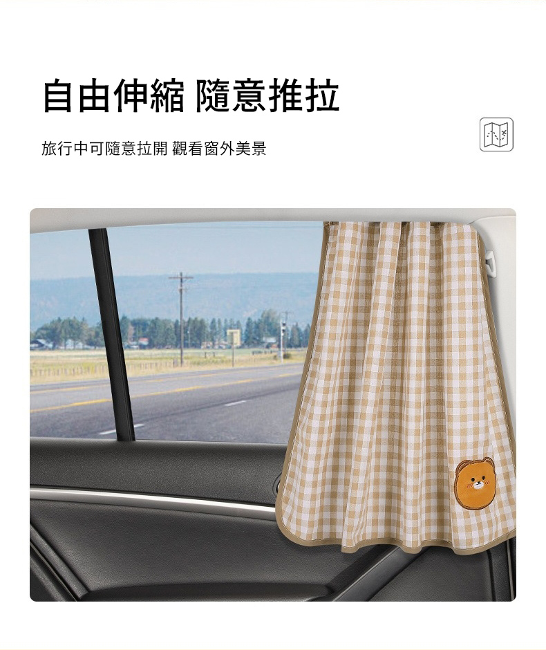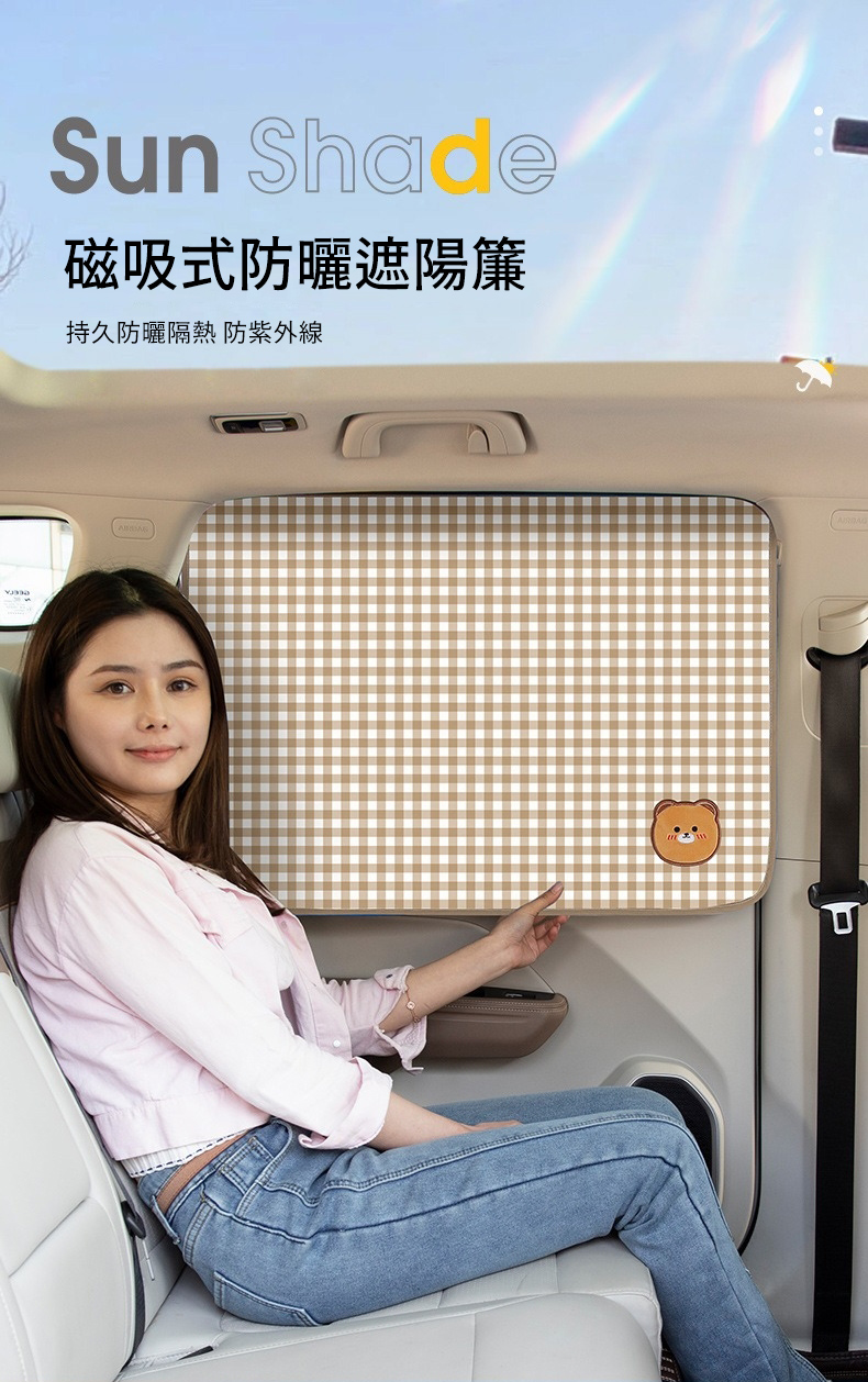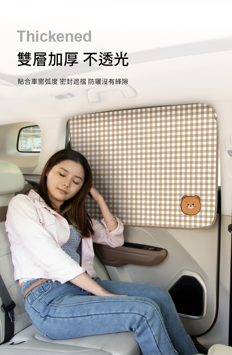 【花太太】磁吸式汽車遮陽簾 防曬隔熱遮光車用窗簾(2入組)-粉色格子兔兔