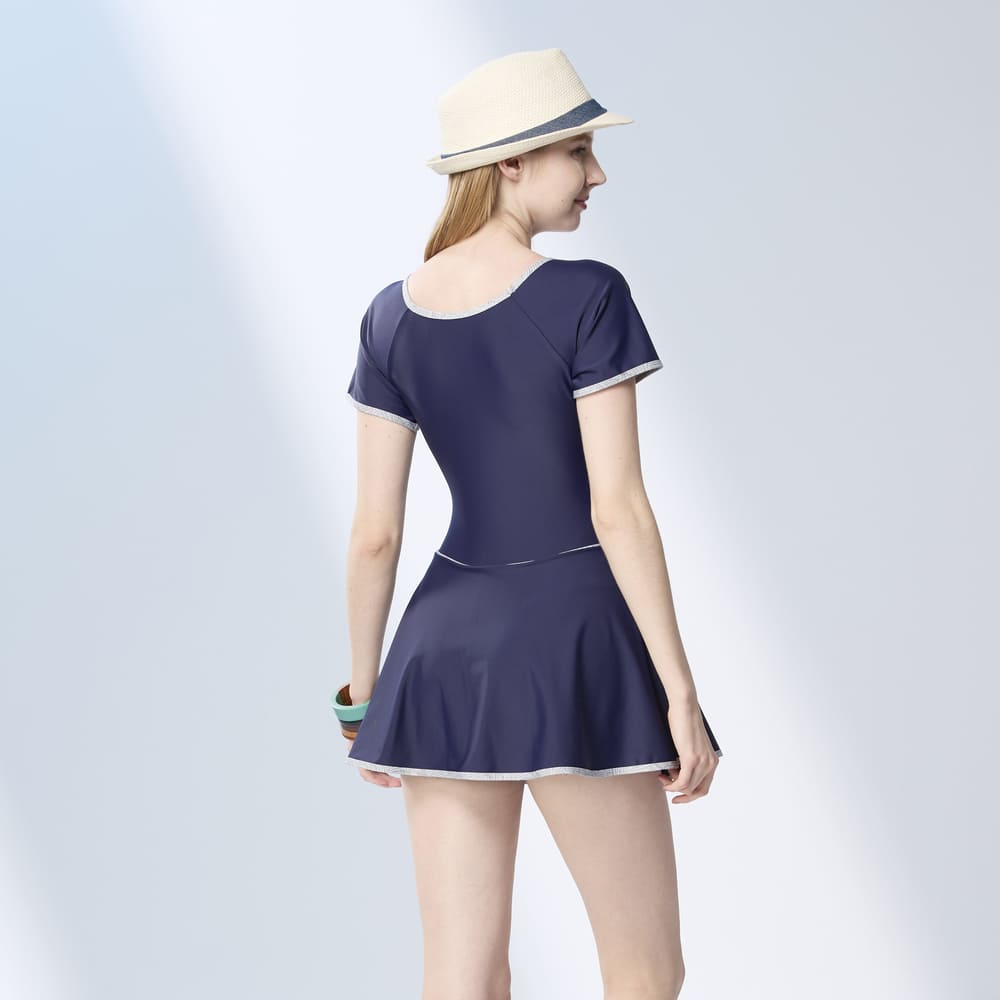 Monina Taiwan-made short-sleeved one-piece swimsuit for big girls, plus size ~ 5L, slim design, blue -3L