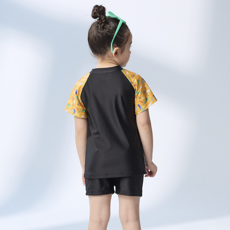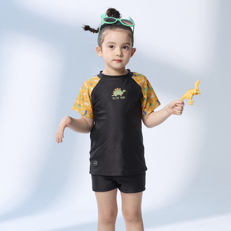 Monina, Made in Taiwan, Children's Short-Sleeve Two-Piece Sun Protection Swimsuit, Dinosaur Design, Suitable for Both Boys and Girls