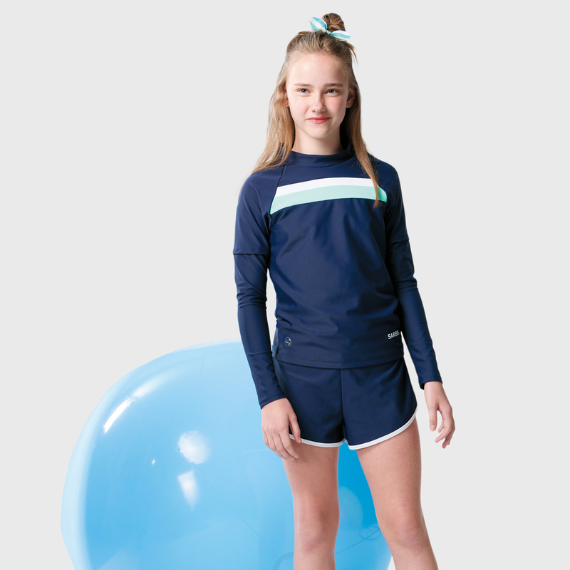 Monina, Made in Taiwan, Mint Green Color Block Long-Sleeved Sun Protection Two-Piece Swimsuit for Big Kids