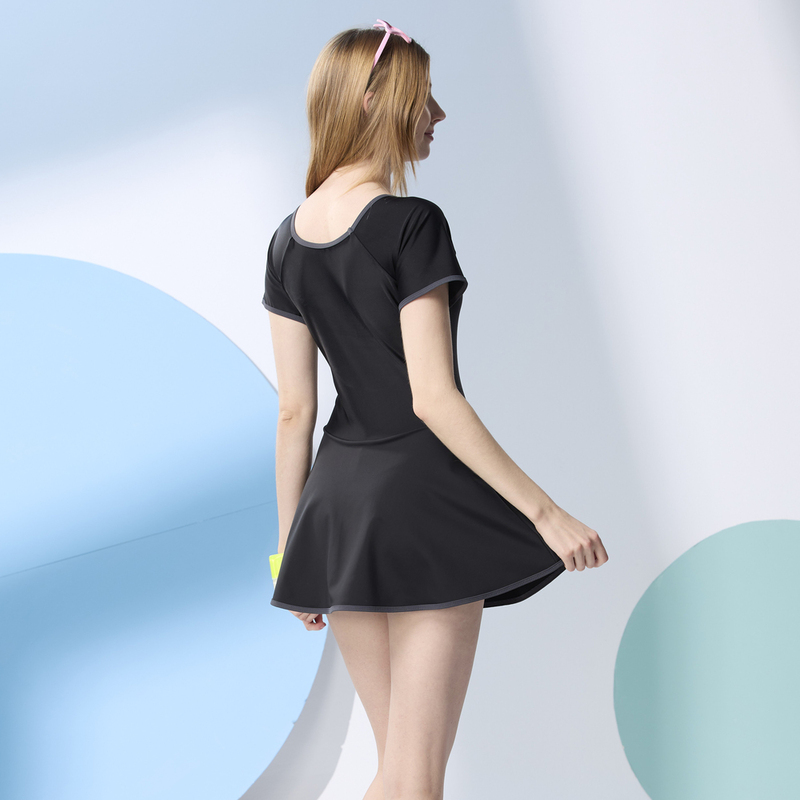 Made in Taiwan, plus-size short-sleeved women's swimsuit dress (~5L) - slimming and flattering.
