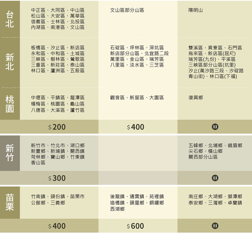 注意事項1.出貨:本公司收到訂單後將有專人與您確認訂單 .大型家具無法指定到貨日期與時間由本公司外包貨運司機安排路線出車.7-15天由司機前一天電聯約配安排出貨非人為可控制因素(如天災/下大雨/塞車…等因素)造成無法如期出貨/本公司將延遲到貨或再另約時間安排配送敬請見諒!特殊情況:如因特殊地形(巷弄貨車無法進入/需要吊掛費用)偏遠山區造成司機送貨不便.需要額外收費/會先取得客戶同意後配送!客戶若不同意則取消該筆交易!部分未載名偏遠鄉鎮區域本公司保有出貨與否權利!2.收貨:當您收到商品時請先檢查商品無誤後簽收!商品享有10天鑑賞期(鑑賞期非試用期/退貨請保持商品完整否則會影響您的退貨權益)大型家具若非商品瑕疵(個人喜好因素.訂錯尺寸,,,,等退貨原因)需加收一趟司機取回商品勞務費1500元本公司無提供大型家具回收服務!若需回收請撥打免付費清運專線:0800-085-717