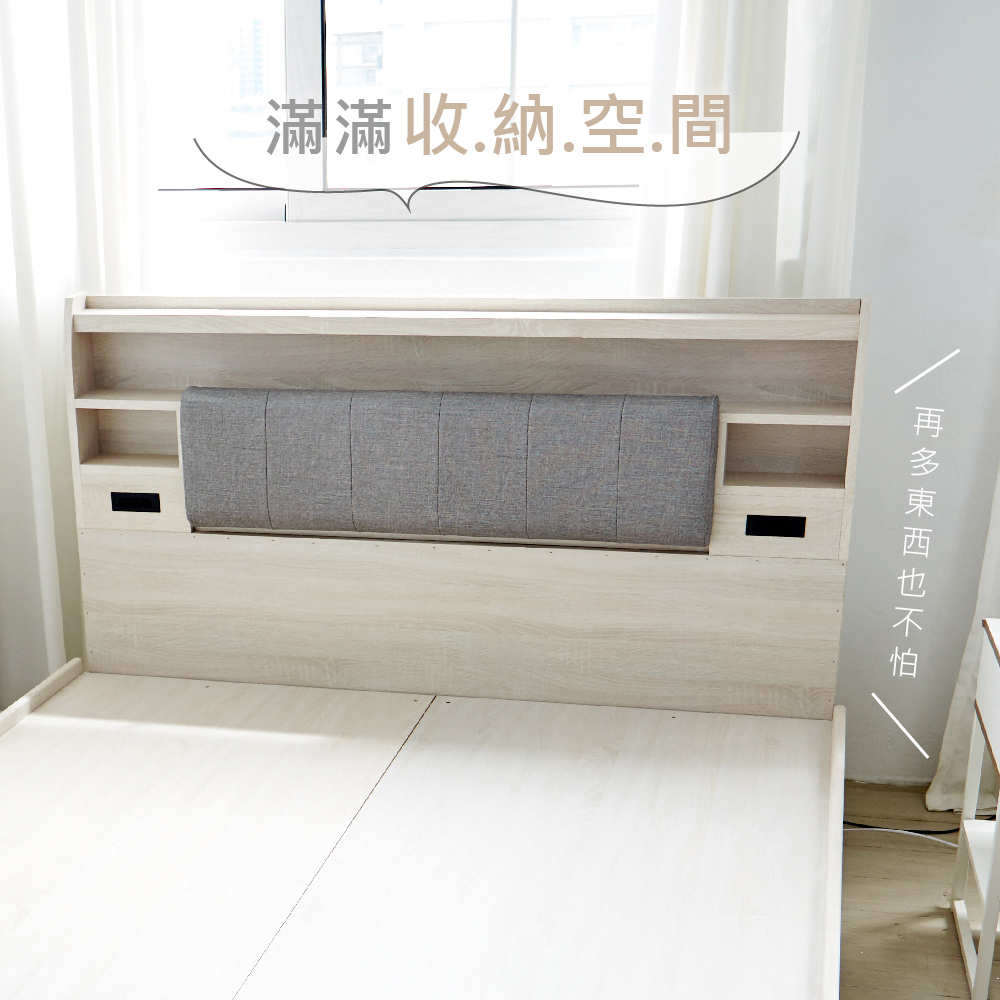 台灣製【藤原傢俬】雙USB附插座/燈床頭(不含床底座)