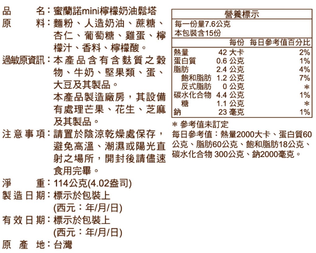 ◎Brand:蜜蘭諾 ◎Specifications: 114g克 x 1 x 1BOX盒