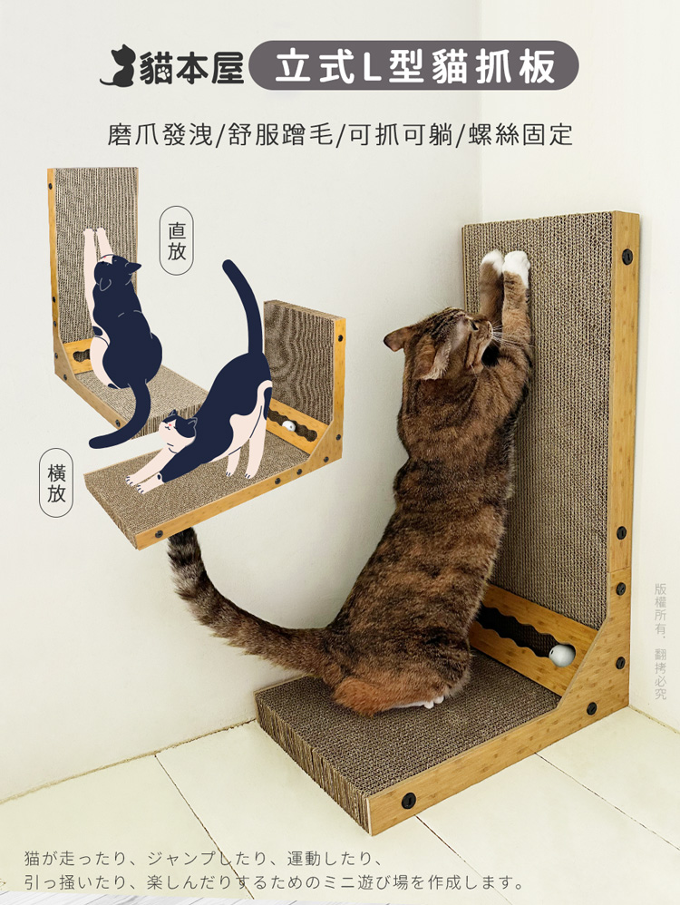 【貓本屋】立式L型貓抓板(附鈴鐺球)-OO-P-SB06-L型