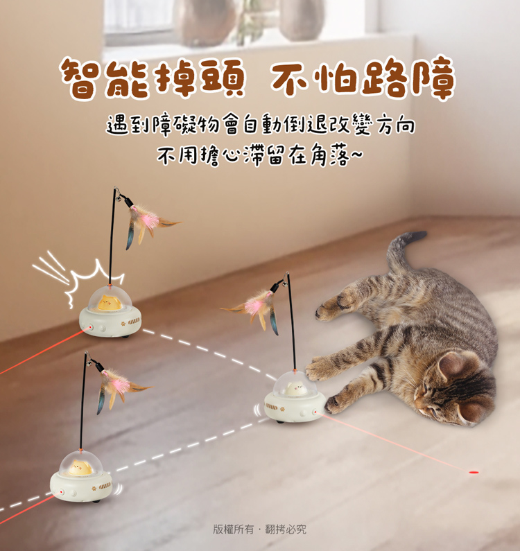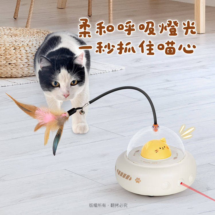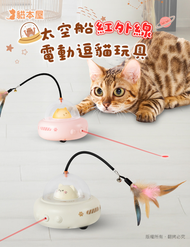 【貓本屋】太空船紅外線 電動逗貓玩具-淺奶-OO-P-T27-BR