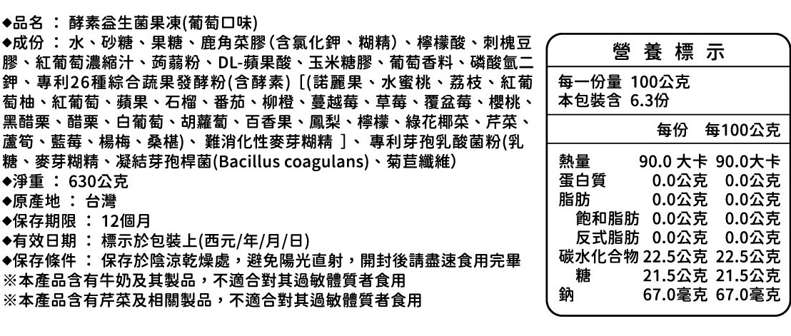 A:台灣風情-酵素益生菌果凍禮盒(🍇葡萄口味)630g