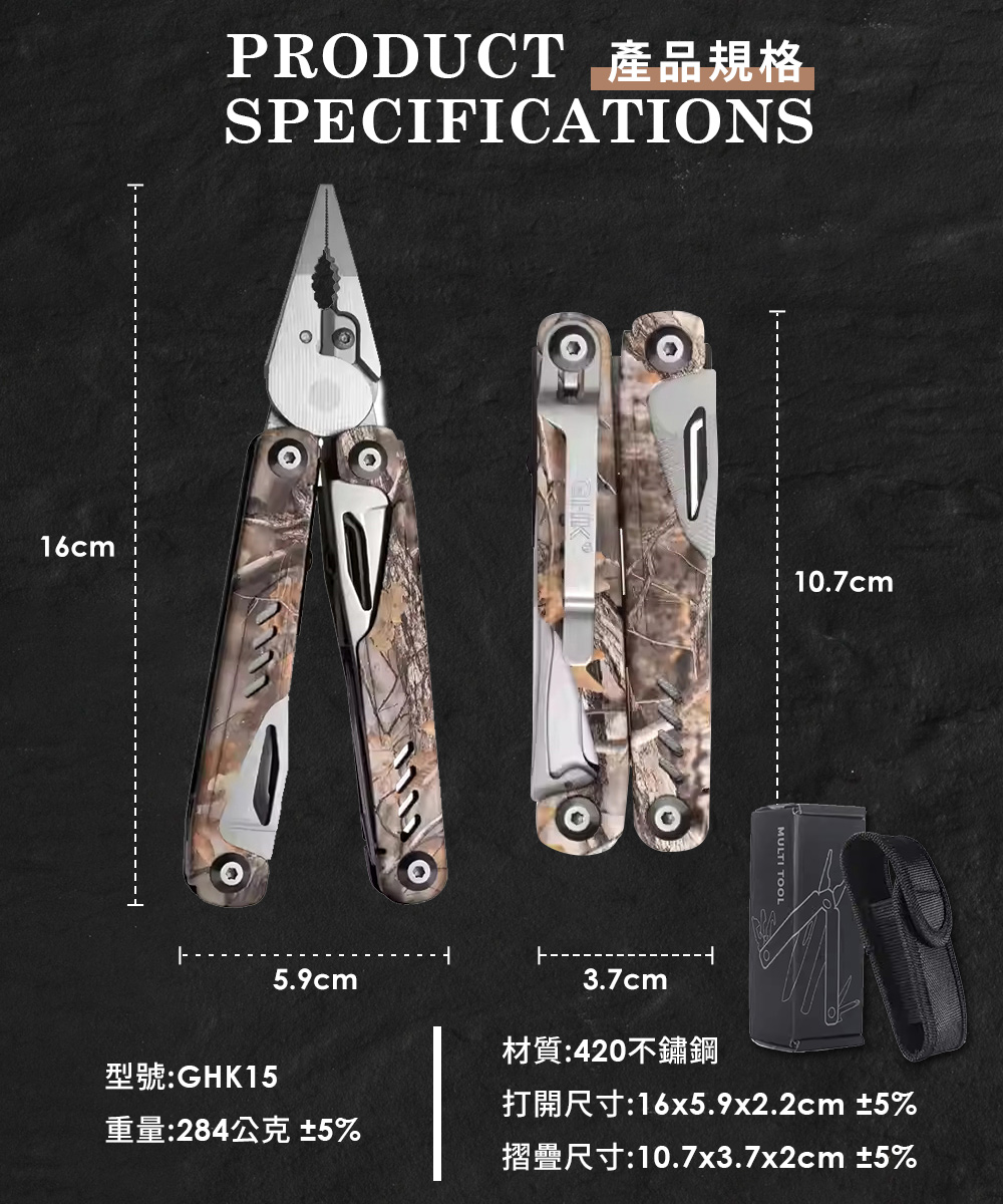 【金永利鋼刀】420不鏽鋼 15合一多功能萬用 折疊瑞士刀 露營用刀
