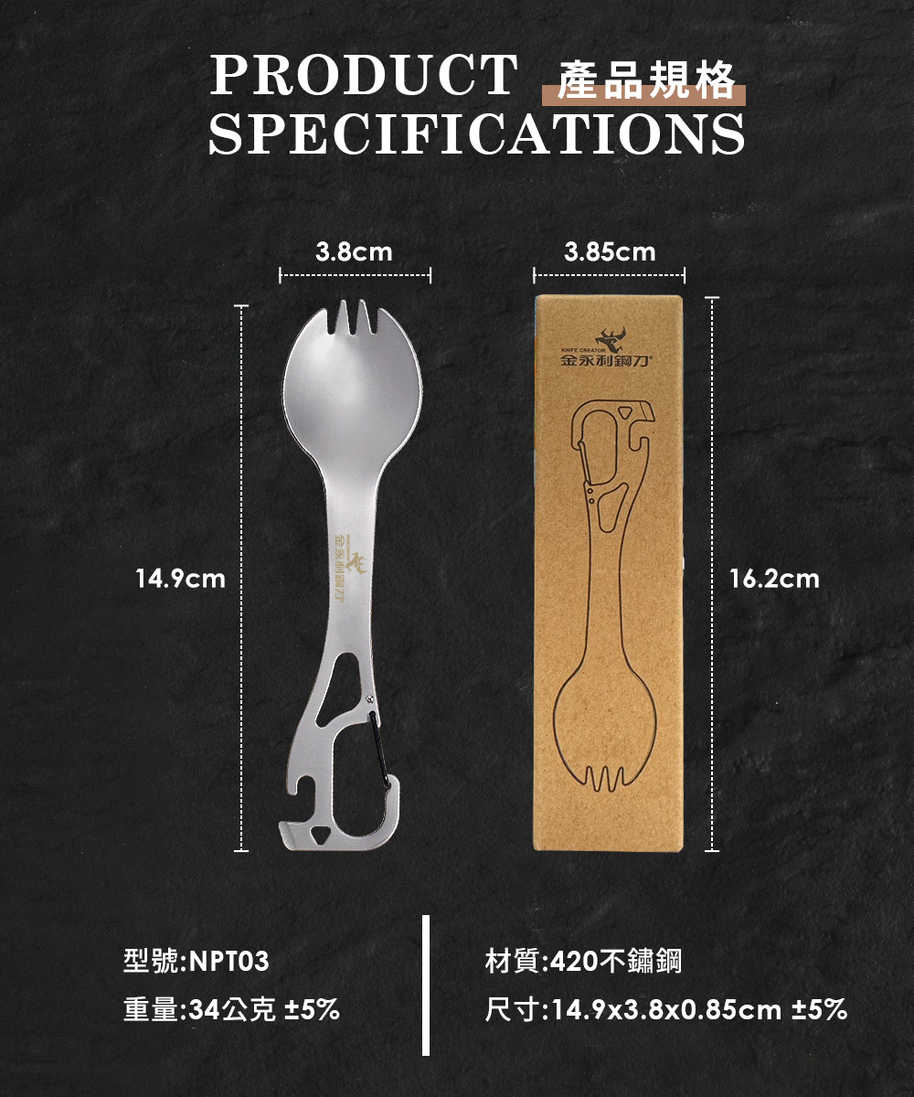【金永利鋼刀】420不銹鋼多功能湯匙/叉子 露營餐具