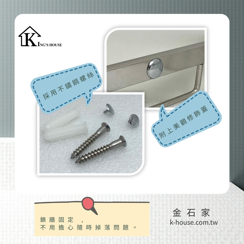 安裝方式: 鎖牆固定使用(搭配不鏽鋼螺絲)