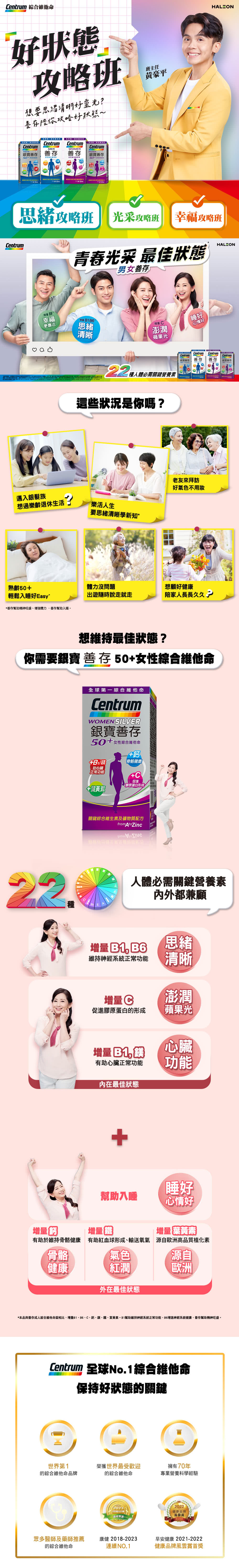 針對50歲以上女性特別強化+維生素B1/鎂助心臟正常功能一起青春有光彩※ 製造日期與有效期限,商品成分與適用注意事項皆標示於包裝或產品中※ 本產品網頁因拍攝關係,圖檔略有差異,實際以廠商出貨為主※ 本產品圖片.文案若有變動差異,敬請參照實際到貨商品為準