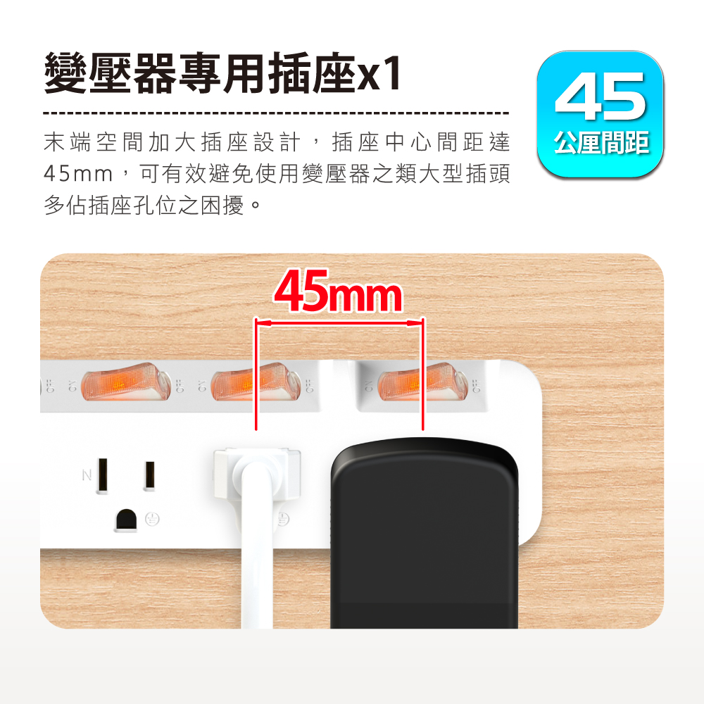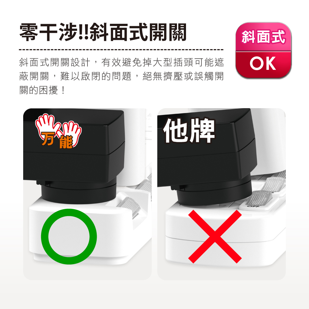 【雙手萬能】斜面7切6座3P延長線-180公分/6尺(旋轉平貼插頭)