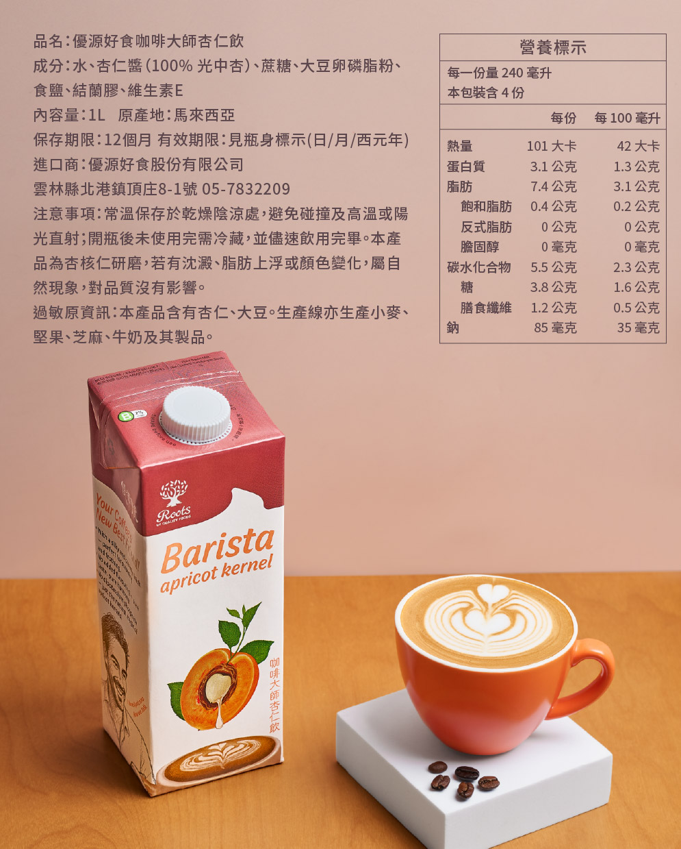Combo Set of Calm Drip Coffee Bag with Barista Apricot Kernel Milk 1L