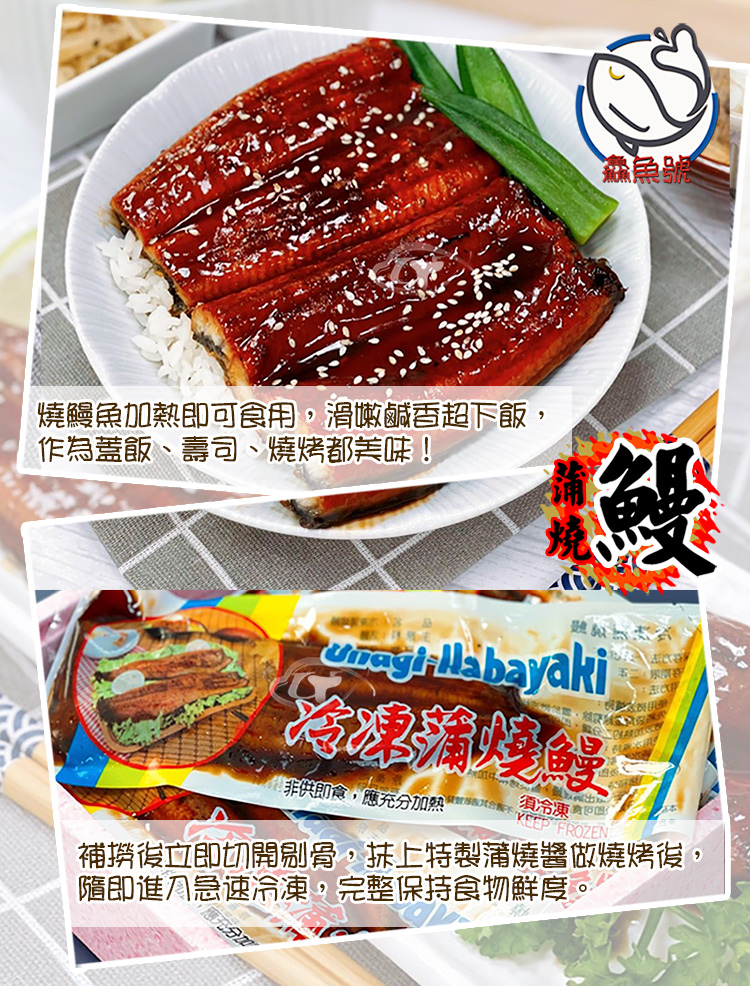 ★日式蒲燒醬汁,甘甜鹹香★軟嫩鰻魚肉,入口即化口感★簡單加熱就可以食用★饕客最愛,小酌良伴鱻魚號 日式風味鮮嫩蒲燒鰻8包組合在家也能吃到道地日式蒲燒鰻魚料理!嚴選台灣養殖鰻魚,體型肥嫩厚實,肉質甘甜且膠質豐富!特大厚片裸鰻,特製醬汁燒烤製成,真空包裝鎖住美味!蒲燒鰻魚加熱即可食用,滑嫩鹹香超下飯,作為蓋飯、壽司、燒烤都美味!《產品特色》◆蒲燒的做法是從日本江戶時代開始,漁民為了保存漁獲並且增添風味的一個做法。◆精選鰻魚以特製醬汁燒烤製成的蒲燒鰻,鮮嫩多汁、風味濃厚!◆補撈後立即切開剔骨,抹上特製蒲燒醬做燒烤後,隨即進入急速冷凍,完整保持食物鮮度。◆蒲燒鰻油脂均勻,味道鮮美,口感到地美味,讓人停不下的好滋味。《食用方法》1.使用微波爐時,先將袋角虛線剪除,置於微波爐中,以強微波加熱約二分鐘,即可食用。2.使用水煮時,先將水煮沸後再把調理鰻(連袋)放入水中煮三分鐘後即可食用。3.使用烤箱時,先剪除袋口取出調理鰻,置於烤箱中加熱約10分鐘後即可食用。※本產品含魚類、大豆類、麩質穀類及其製品,不適合其過敏體質者食用。※食用時請小心細刺。《商品規格》品 牌:鱻魚號商品名稱:日式風味鮮嫩蒲燒鰻商品型號:GBF-PM205商品重量:250g±10%/包(固形物:250g)商品數量:8包商品成分:鰻魚、蒲燒醬油(砂糖、甜味劑{D山梨醇液70%}、純釀造醬油[水、脫脂大豆片(基因改造)、小麥]、食用酒精、食鹽、黏稠劑(乙醯化己二酸二澱粉、玉米糖膠)、調味劑(L-麩酸鈉、乳酸)、複方調味劑[甜味劑(D山梨醇液70%)、水、丙二醇、食用酒精、胺基乙酸、氯化鈉、琥珀酸二鈉、乙基麥芽醇、多磷酸鈉]、紅麴色素(含酒精)、焦糖色素、婀娜多色素(含丙二醇、脂肪酸甘油脂、磷酸二氫鉀)、胭脂紅色素(含麥芽糊精)、複方甜味劑(糊精、檸檬酸鈉、甘草萃)、品質改良劑(偏磷酸鈉、多磷酸鈉)商品產地:台灣包裝方式:真空包保存方式:冷凍-18℃以下保存期限:2年出貨天數:生鮮產品為了送給您最新鮮,收件日為下訂日+3個工作天,感謝您的愛護注意事項※本產品含魚類、大豆類、麩質穀類及其製品,不適合其過敏體質者食用。※食用時請小心細刺◆未食用完請放入冰箱◆實際出貨以秤重量為主◆請盡量於中午前收取貨物,避免配送過程過久影響食品品質,並立即冷凍◆如收到商品請後立即拆開檢查,如有任何問題請立刻與廠商聯絡※本品己投保明台產品責任保險,投保產品責任險字號:080403PDT00143公司名稱:台灣鑫鮮生技有限公司公司電話:(07)373-0007公司住址:高雄市仁武區澄觀路1633號已投保產品責任險字號:080403PDT00143食品業者登錄字號:E-127218298-00000-1鱻魚號,蒲燒鰻,鰻魚,蒲燒,日式