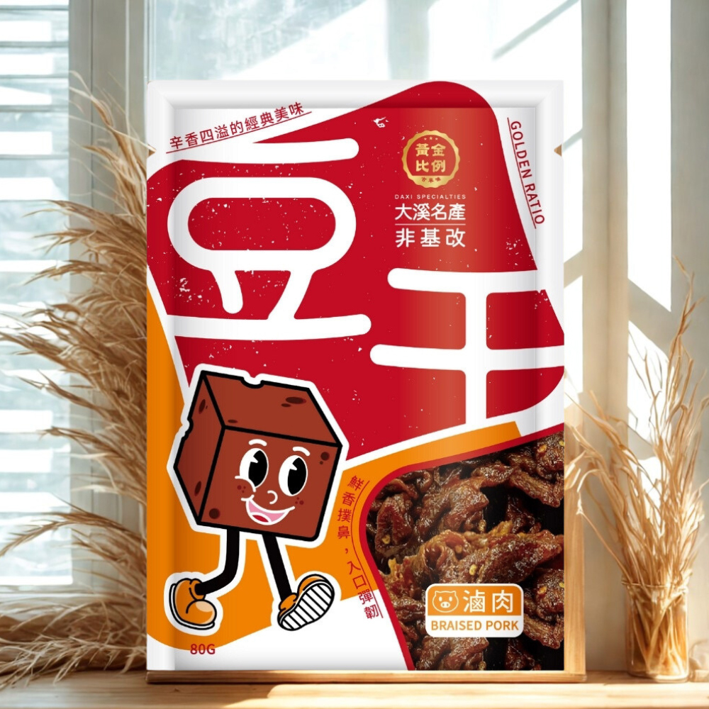 [Hongli] Golden Ratio Retro Non-GMO Dried Tofu (Braised Pork Flavor) 80g (Set of 3 Packs)