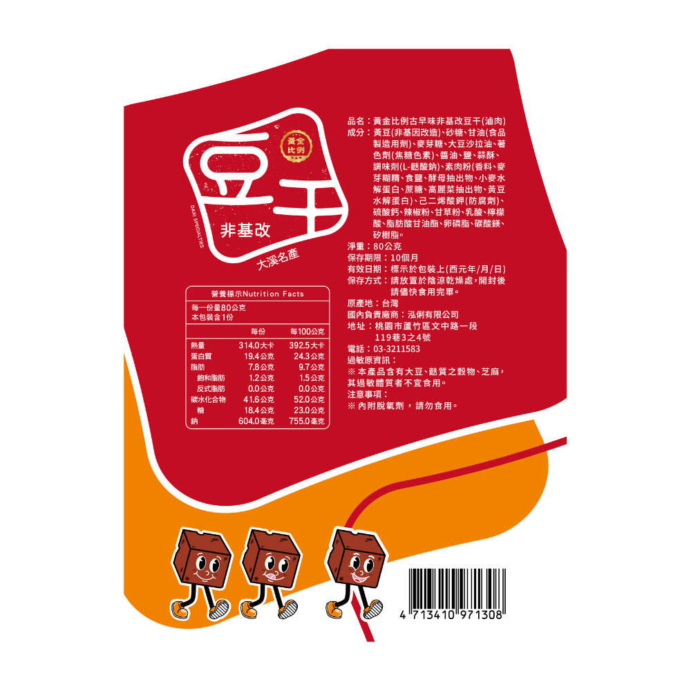 [泓俐]黃金比例古早味非基改豆干(滷肉)80g(3包組)