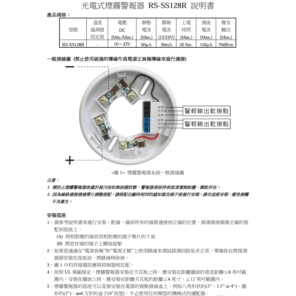 昌運監視器 RS-SS128R、RS-SS128A 光電式煙霧警報器