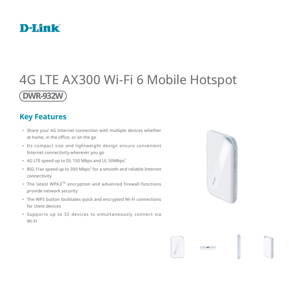 昌運監視器 D-LINK 友訊 DWR-932W 4G LTE AX300 Wi-Fi 6 無線網路分享器 路由器