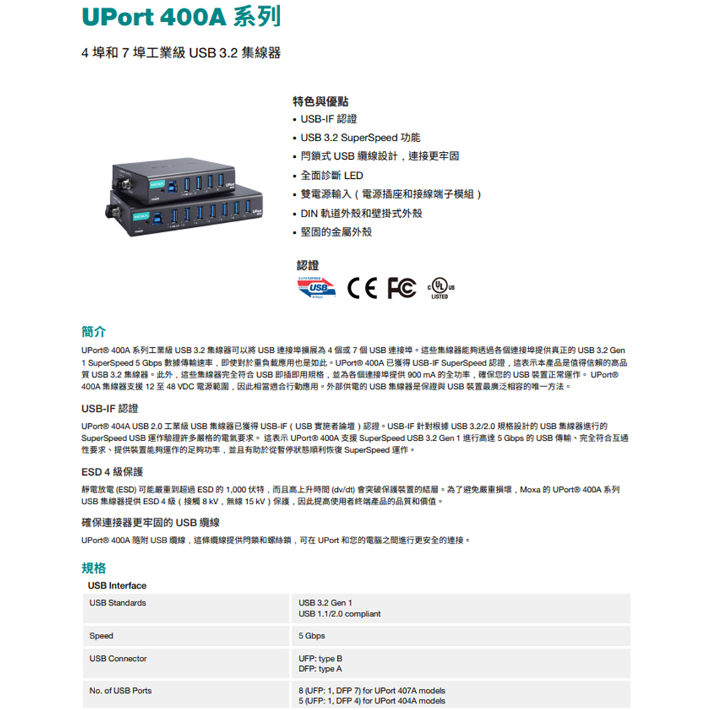 昌運監視器 MOXA UPort 404A 4埠工業級USB 3.2集線器