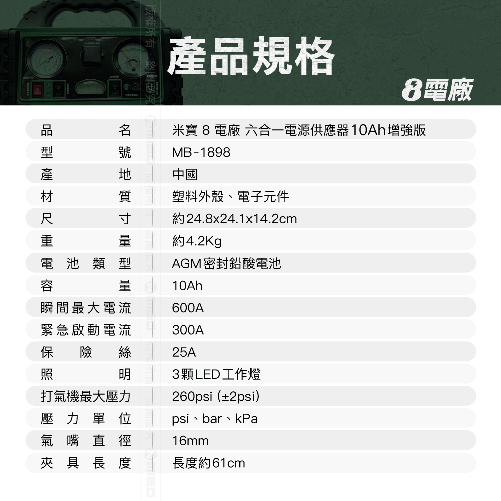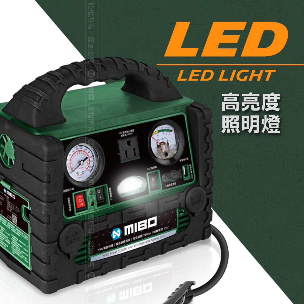 MIBO MB-1898 10Ah 6-in-1 Power Supply (Military Green Enhanced Model), Original Factory Direct, Vehicle Emergency Use, 110V Air Inflator