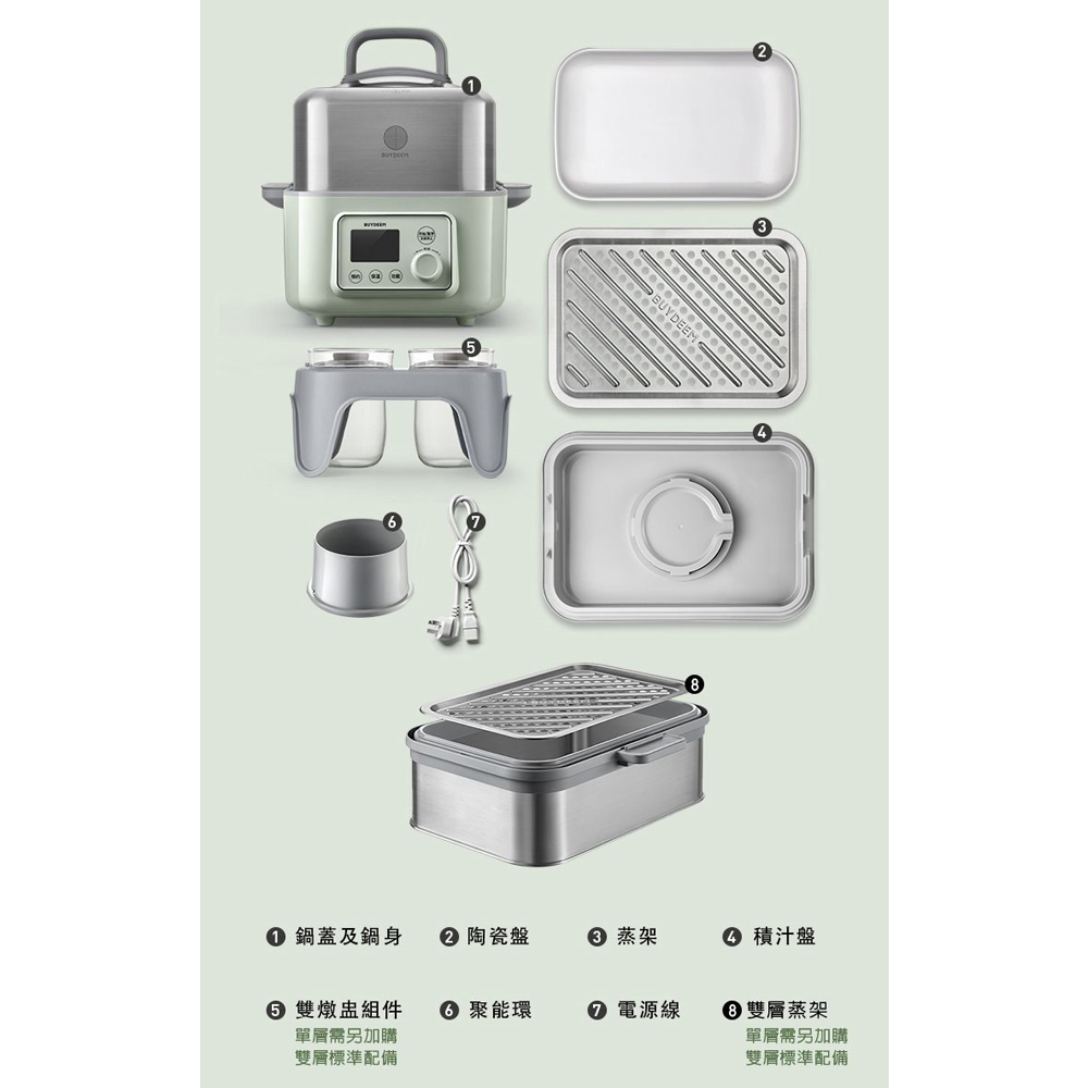 型號:G561 容量:2公升 電壓:110V 頻率:60Hz 消耗功率:1250W 尺寸:寬28.5深33.5高29.5cm 重量:4.3kg 材質:不鏽鋼 產地:中國 保固:1年 水箱容量:2L 鍋體容量:5L 鍋蓋尺寸:W29.5 x D20 x H16.5cm 蒸架尺寸:W28.7 x D19.2 x H1cm 積汁盤尺寸:W29.5 x D 20 x H3.8cm 聚能環 尺寸:W13 x D13 x H7.3cm 鍋身尺寸:W33.5 x D28.5 x H13cm 商品材質:鍋蓋 加厚鋼化玻璃 蒸架 食品級304不鏽鋼 , 積汁盤 、聚能環 、鍋身 聚丙烯PP塑膠(不含BPA) 電檢:R31476