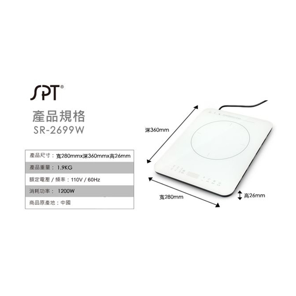 SPT Sunpentown IH Ultra-Thin Multi-Function Inverter Induction Cooker 110V Exclusive SR-2699W