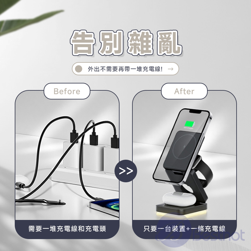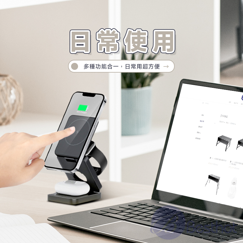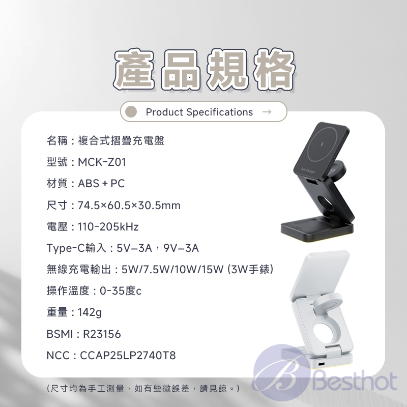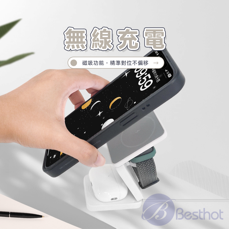 【Besthot】 MCK-Z01-折疊式三合一旅行磁吸無線充電座